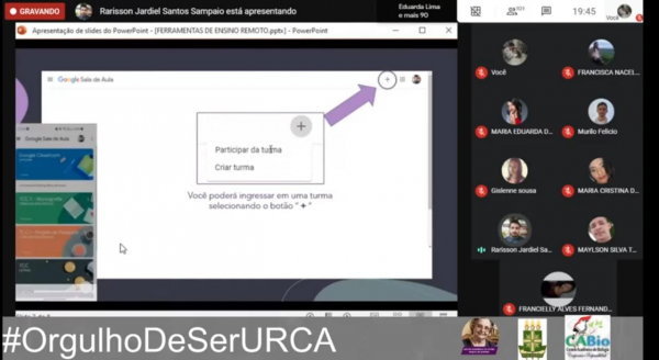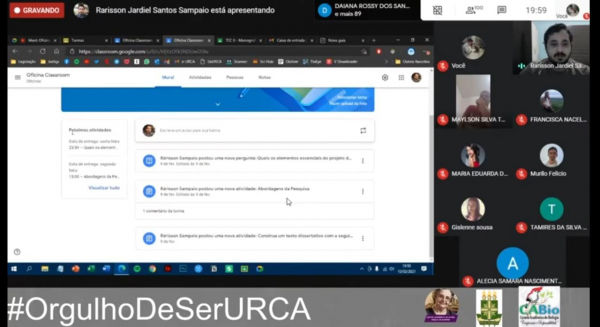 Ministrada pelo professor Rárisson Sampaio, a oficina contou com um diálogo sobre as mudanças no contexto da aprendizagem a partir dos meios digitais e uma explicação prática da utilização da plataforma Google classroom no dia a dia da sala de aula.