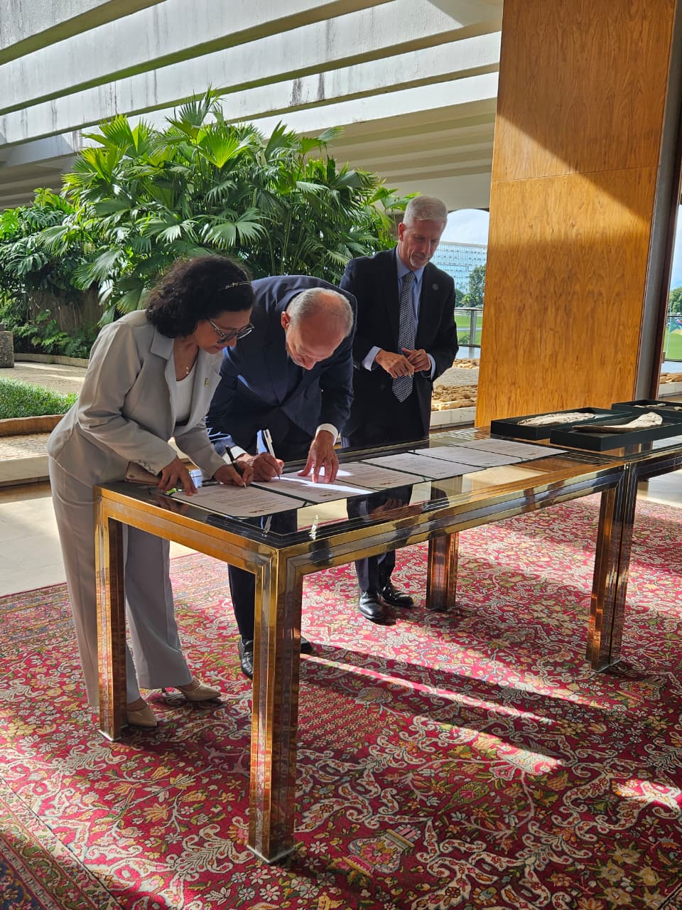 A solenidade teve o acompanhamento do Secretário de Ciência e Tecnologia para o Desenvolvimento Social do MCTI, Inácio Arruda, a Secretária de Cooperação Internacional da PGR, Anamara Osório Silva, e a curadora do Museu de Paleontologia Plácido Cidade Nuvens, Edenilce Peixoto Batista.