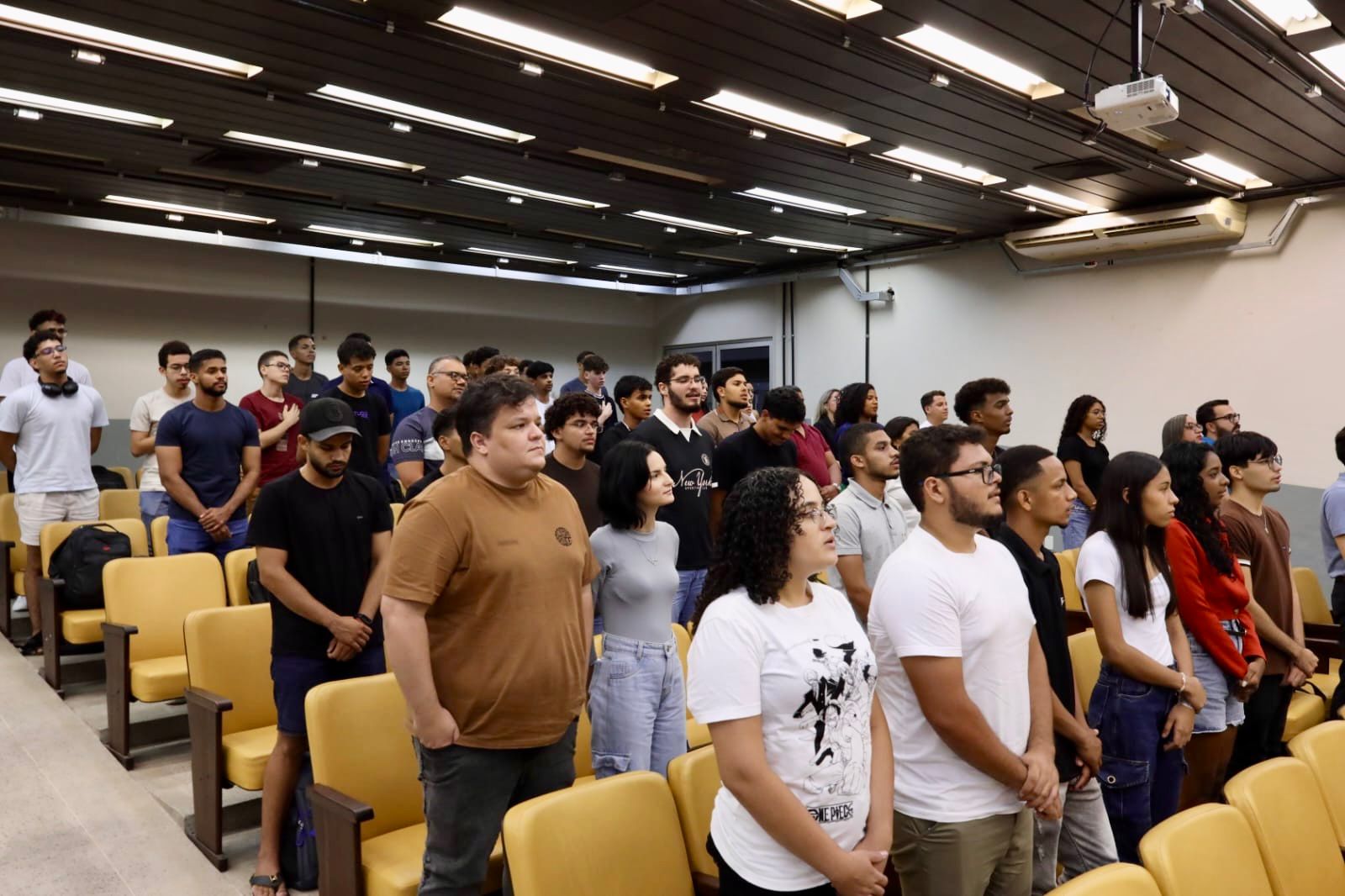 O evento contou com a presença do Reitor da URCA, Carlos Kleber de Oliveira, a vice-reitora, Socorro Oliveira, o diretor do CCT, Renato de Oliveira Fernandes, o coordenador do curso professor Synardo Leonardo Pereira, docentes, pró-reitores e os estudantes da primeira turma do curso.