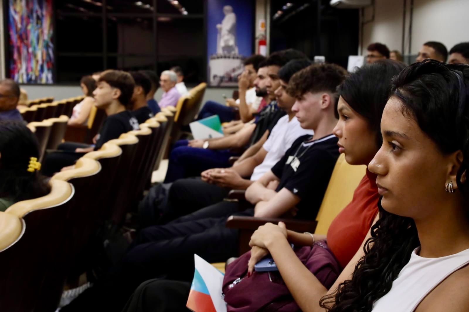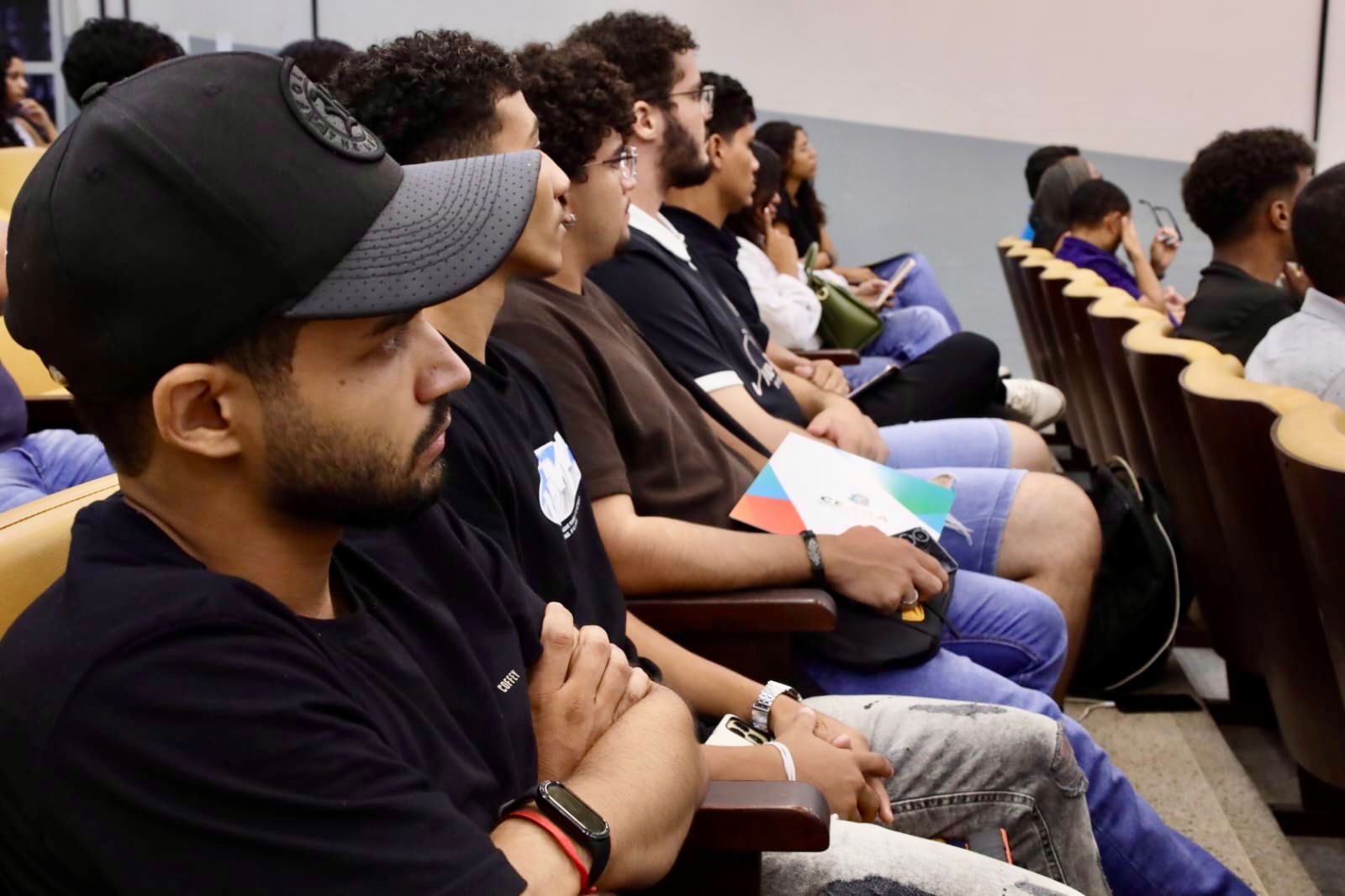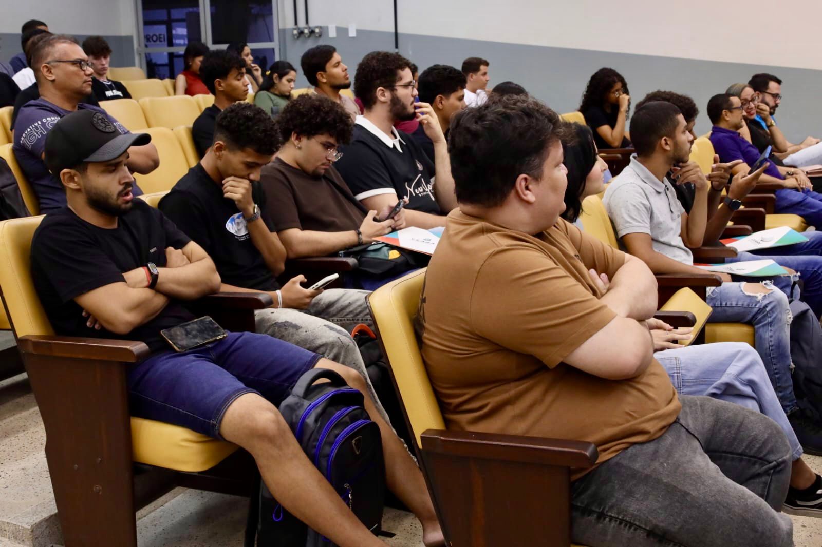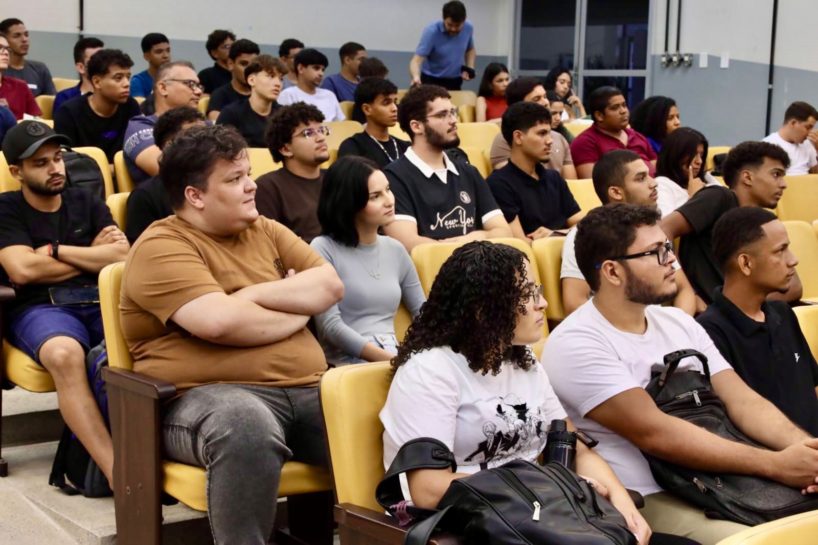 A abertura dessa nova fase de formação aconteceu no auditório do CCT, com aula inaugural remota, do diretor de Inovação da Funcap, Jorge Soares, sobre “Engenharia por trás da Engenharia: o que permanece quando tudo muda”. O professor Jorge lamentou não poder estar pessoalmente no Cariri e iniciou sua fala sobre a importância de estar antenados nas inovações tecnológicas, sem nunca esquecer dos fundamentos básicos da Matemática e da Física. Ele aconselhou os novos alunos a aproveitarem as oportunidades locais, regionais e internacionais, citando os próprios editais da Funcap e parabenizou os jovens pelo ingresso no curso.