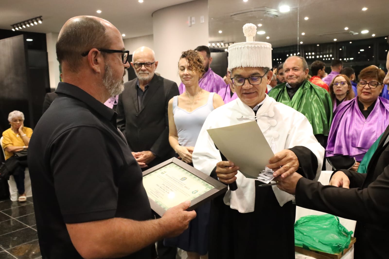 Solenidade no Memorial Padre Cícero marca a entrega da maior honraria da universidade ao legado do intelectual juazeirense; diploma foi recebido por seu filho.