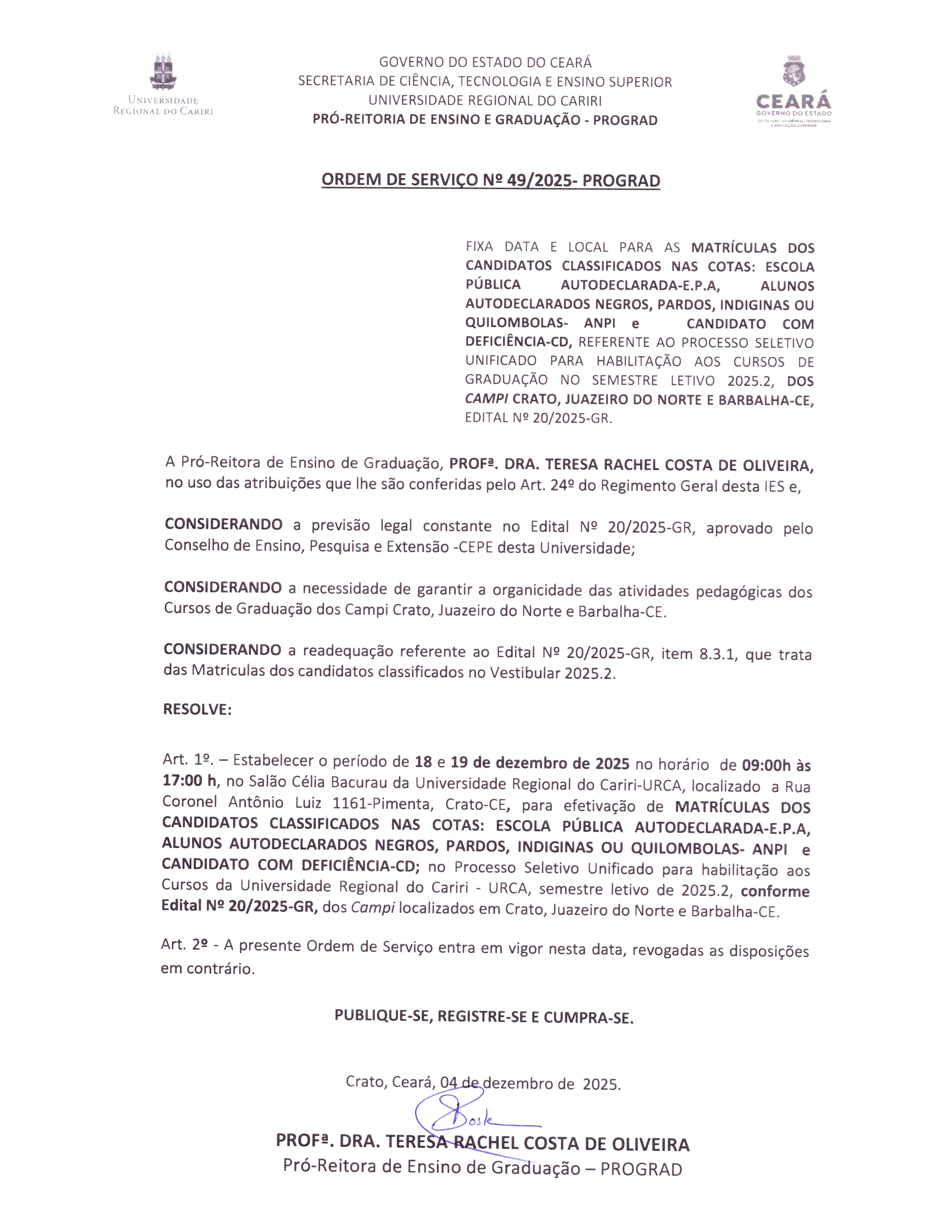 08/12/2025 – ORDEM DE SERVIÇO Nº 049 – Convoca Candidatos para Procedimento de Heteroidentificação CAMPOS SALES/CE – (Clique Aqui)
