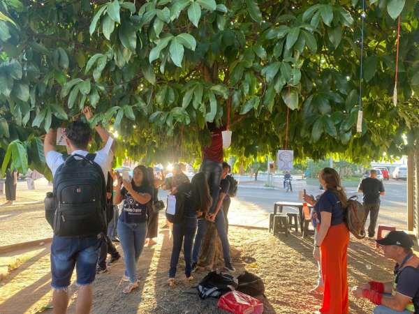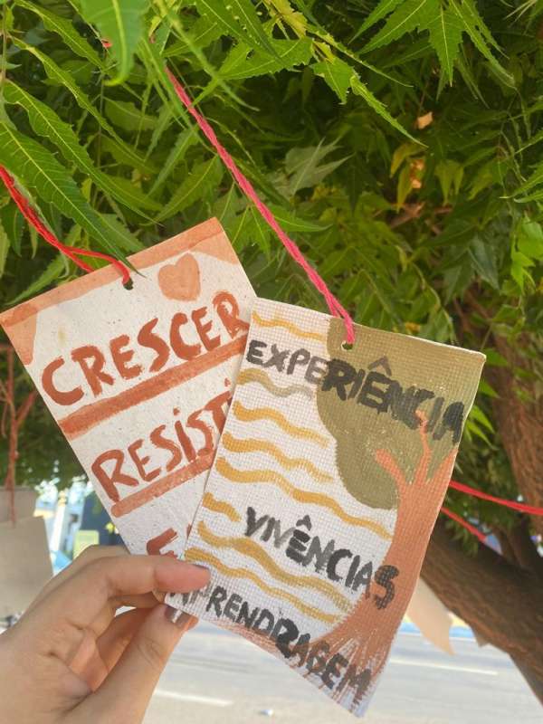 Na ocasião houve uma reflexão de temas pertinentes à formação docente desenvolvida por meio do Programa de Residência Pedagógica da URCA, e, uma oficina, que resultou em uma intervenção Urbana. A ideia é que as pessoas que passem pelo movimentado triângulo CRAJUBAR, possam admirar as árvores em que foram penduradas “palavrasmundo” (que numa concepção freiriana, são aquelas que nos fazem parar, refletir e problematizar o nosso mundo, pessoal, social, profissional, ambiental… na tentativa de melhor entendê-lo e melhorá-lo) escritas em papel reciclável, com tinta feita de pigmentos naturais, provenientes do ateliê de pinturas do Curso de Artes Visuais da URCA. Um detalhe, é que o papel utilizado contém sementes de flores e de outras árvores, quando a própria natureza se encarregar de destruí-los eles se transformarão em jardim, darão um colorido novo ao lugar.
